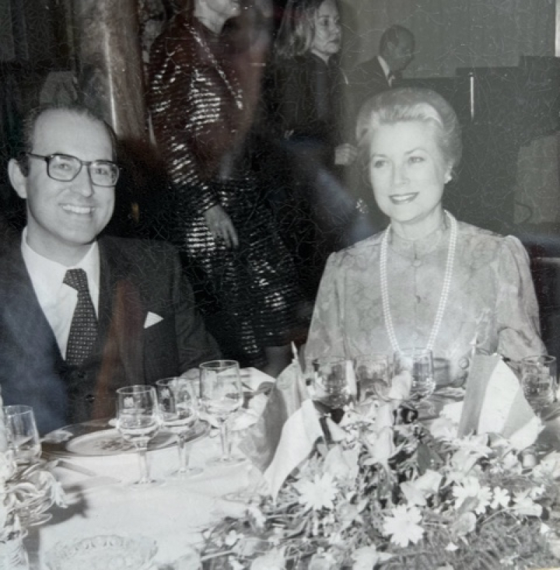 Princess Grace with Pierre Joannon, who organised the day long commemoration of the centenary of Irish writer James Joyce, which took place in Monaco in April 1982, with the support of The Ireland Fund of France.