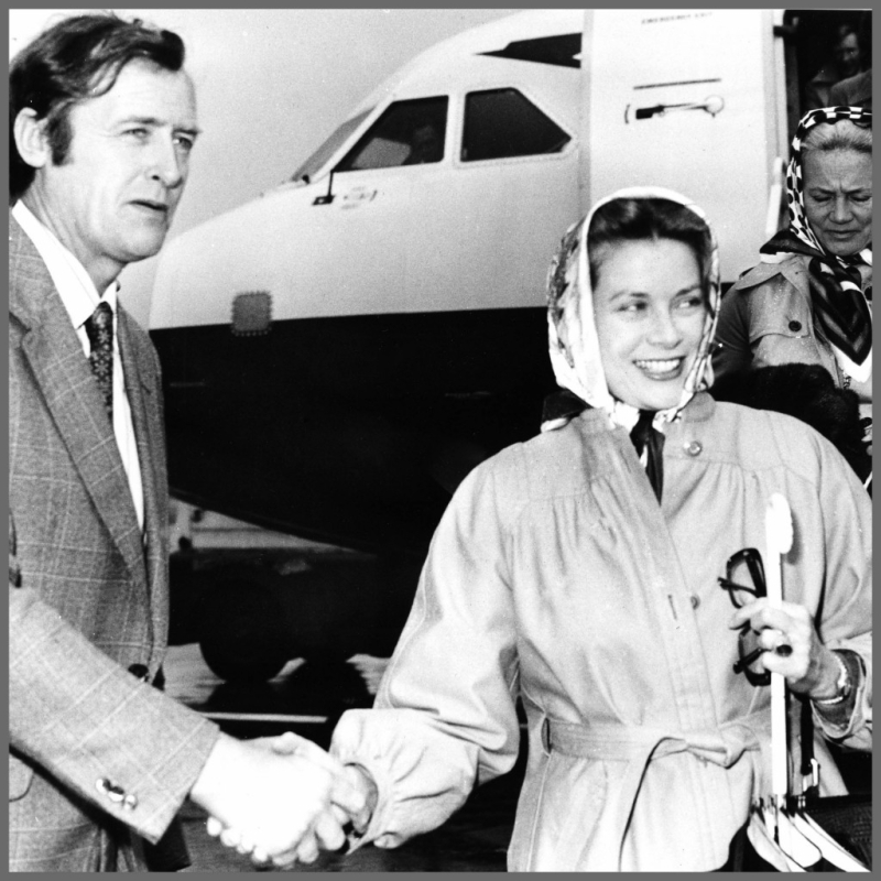 Her Serene Highness Princess Grace of Monaco is greeted upon her arrival to Ireland in 1961 for the State Visit by her husband Prince Rainier III.