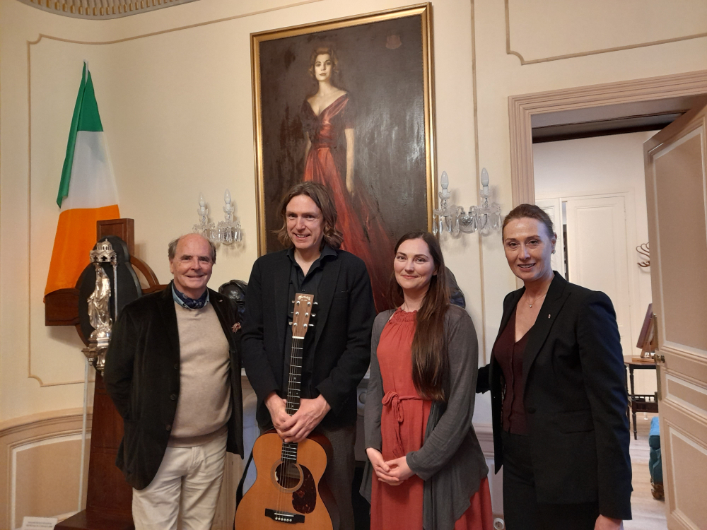 What a wonderful evening with this talented, award-winning duo who performed a mix of traditional and contemporary music and song on fiddle, guitar and vocals. A highlight was the performance of a song in Irish from the personal collection of music scores of Princess Grace, titled 'Cailín deas crúite na mbó' (A pretty girl milking her cow). For their last song Zoë and John's teenage children Eoin and Fiona joined them on stage to perform, for an outstanding grand finale.